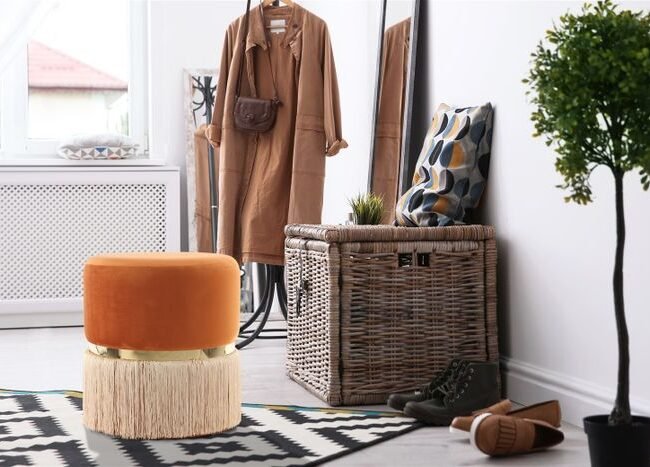 Login to see pricesRound stool with backrest in pleated look, velvet cover, comfortably padded