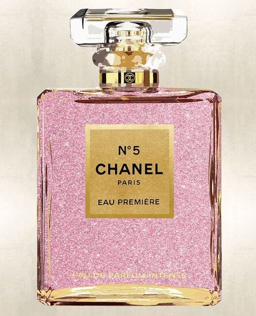 Login to see pricesGlasschilderij met goudfolie 60x80cm Roze doorzichtig flesje