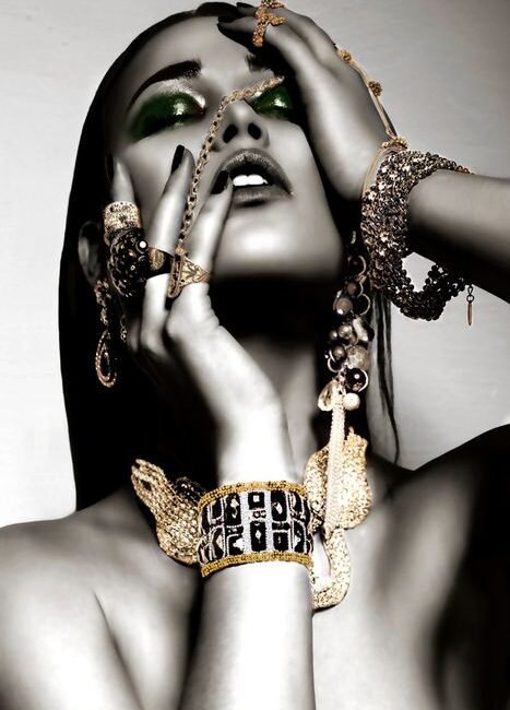 Login to see pricesGlasschilderij 110x160cm Grijze vrouw met sierraden
