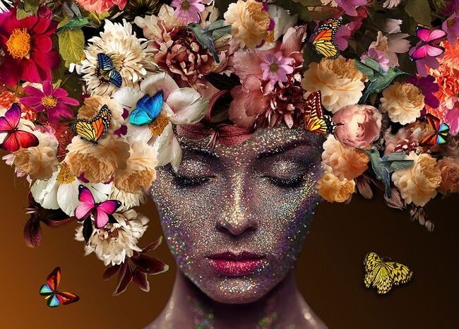 Login to see pricesGlasschilderij met 3D reliëf 80x120cm Vrouw met roze bloemen en zonnebril