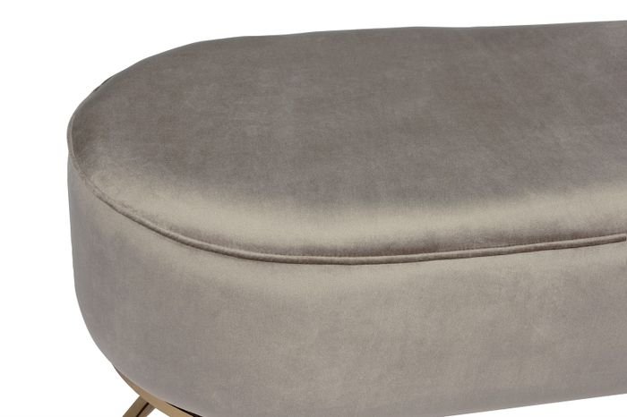 **Elegant seating companion in velvet look** This bench is not just a piece of furniture – it conveys a way of life! It actually brings a lot of glamour and is an elegant, stylish furnishing highlight for your home! Equipped with comfortable, soft upholstery, it guarantees a high level of seating comfort. The exclusive material combination of shiny metal legs in a gold look and the oval shape makes for a real asset in any room. It conveys a noble coziness and offers a lot of comfort as a storage option in the entrance area, seating in the living and dining area or stylishly placed at the foot of the bed. A chic eye-catcher that is pleasant to sit on and that ideally complements almost any furnishing style. The actual color of the piece of furniture may differ from the pictures. Different color nuances can arise due to different incidence of light and different stroke directions of the fabric cover.