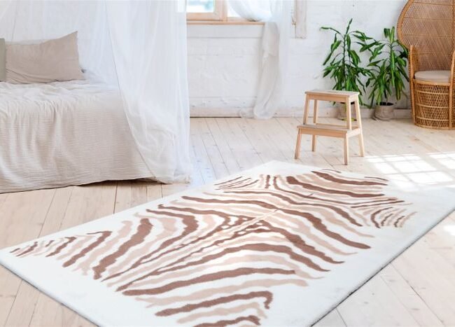 Soft short pile rug, shiny printed, glamorous design