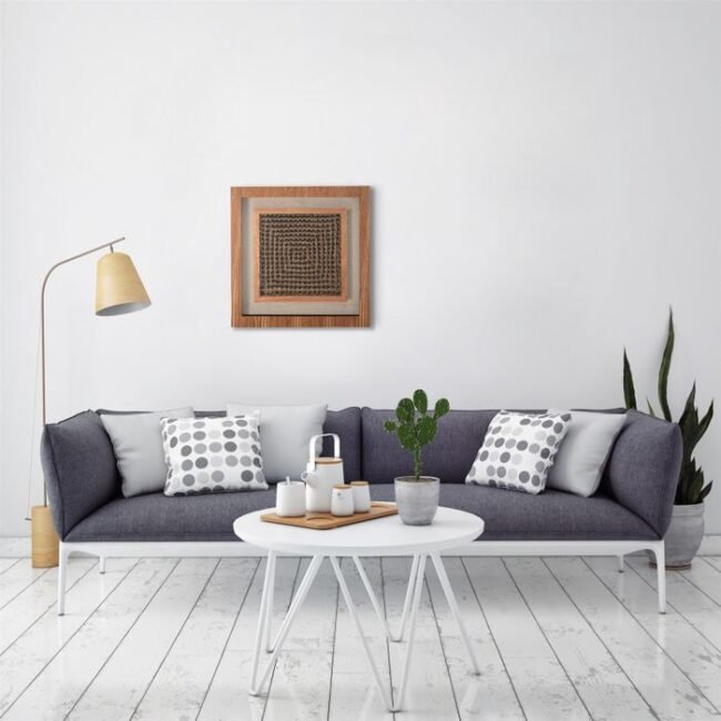**Modern wooden wall picture** This wall picture is particularly popular with people who love nature. The geometric pattern of the picture is simulated by the interwoven wood. This unusual, creative work of art is immediately enchanting and gives every room a natural touch. The elegant wall picture instantly becomes a decorative highlight wherever it hangs. It is strikingly beautiful and natural at the same time.