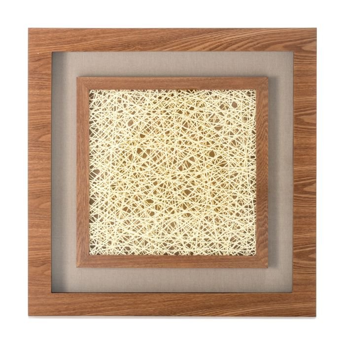 **Modern wall picture made of wood and cord** This wall picture is particularly popular with people who love nature. The geometric pattern of the picture is simulated by the interwoven wood. This unusual, creative work of art is immediately enchanting and gives every room a natural touch. The elegant wall picture instantly becomes a decorative highlight wherever it hangs. It is strikingly beautiful and natural at the same time.