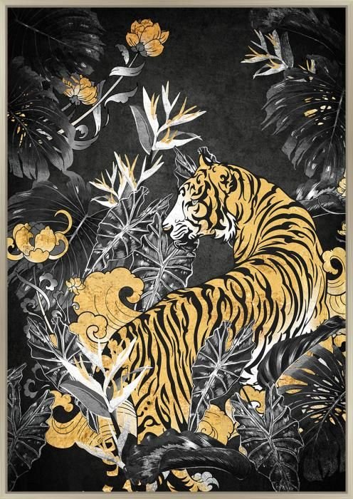 Login to see pricesCanvas incl. baklijst 100x140cm Tijger. Materiaal: canvas+goudfolie