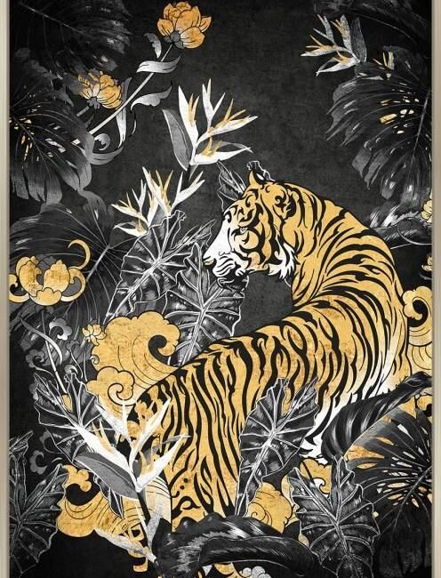 Login to see pricesCanvas incl. baklijst 100x140cm Tijger. Materiaal: canvas+goudfolie