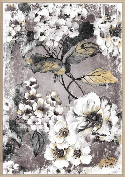 - Canvas incl. baklijst 100x140cm Bloemen retro licht. Materiaal: canvas+acrylverf