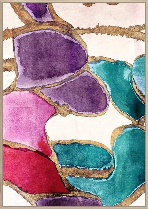 Canvas incl. baklijst 100x140cm Kleurige vlakken. Materiaal: canvas+goudfolie
