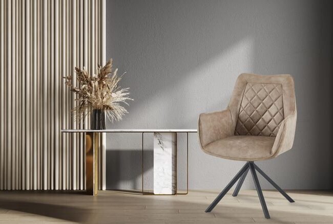 **Armchair set with comfort** You will love sitting down in your new comfort chairs. The high backrest and closed armrests mean that the chair offers a high level of seating comfort, which is supported by the soft outer fabric and the upholstery. The attractive marbled color of the upper material and the unusual shape make the model an eye-catcher in the room. At the same time, contrasting decorative stitching and sturdy metal legs ensure a contrasting design that is impressive. Combine the comfort chair with a modern carpet, a stool to rest your feet on and a side table and enjoy the time in your new living area. The delivery is in a set of 2. The chairs may differ in their actual color from the pictures.