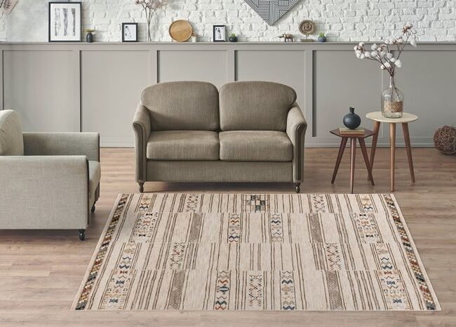 **Stylish carpet in oriental design** The oriental-looking carpet made of 100% polyester is particularly impressive due to its specific design. The oriental motifs adapt to almost any interior style thanks to the neutral colors and let every room shine with new splendor. The easy-care carpet is available in three different sizes and two color combinations. However, you have a variety of different motifs to choose from. Specifications: • Available colors: beige / gray • Pile height: approx. 13mm • Material: 100% polyester • Size: 80cm x 150cm / 120cm x 170cm / 160cm x 230cm