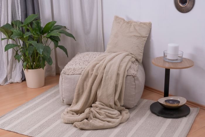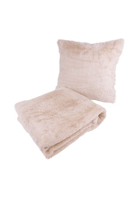 **Cozy pillow & blanket set** This pillow & blanket set promises an absolute cuddly experience. The soft surface of the pillow and blanket invites you to snuggle up and linger – whether on the sofa or as a cozy addition to the bed linen in the bedroom. The set brings a feel-good character and coziness all along the line. The plush front is rounded off by the velvety back. The pillow is softly filled and offers a high level of comfort. The pillowcase can be easily removed via the zipper to clean it if necessary. Thanks to the plain-colored design, the pillow and blanket are contemporary and can be used in almost any style of living. The blanket and pillow may differ in their actual color from the pictures. Different color nuances can arise due to different incidence of light and different stroke directions of the velvet cover.