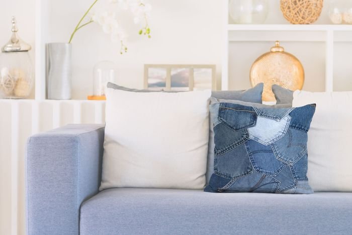 **Beautiful cushion in a jeans look** This cushion is something for really cool retro fans! The denim pockets from high-quality branded jeans are put together here to create a unique work of art. For all modern and young-at-heart jeans lovers, this cushion is a real gem. Whether whole bags or individual denim strips: the denim cushions are real cult objects. The different shades of blue mean they can be wonderfully combined with natural accessories and furniture. Hand-stitched, the robust material made of 100% cotton is extremely durable and easy to care for. For young and old, this denim cushion is a cool eye-catcher in recycled jeans that also reflects the uniqueness of its owner.