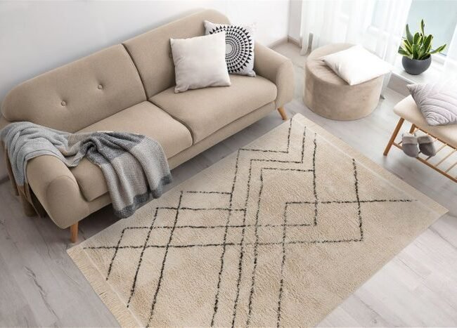 **Faux fur rug in a natural design**