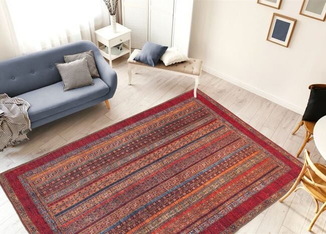 **Stylish ethnic carpet** This flat pile carpet impresses with its jacquard-woven surface and stylish ethnic pattern. The design is harmoniously composed of geometric elements, decorations and ornaments and is a beautiful addition to both modern and oriental living spaces. The timeless yet modern color scheme can stylishly enhance existing furnishings and creates a feel-good atmosphere. The robust, firm pile is given a very special look by soft cotton elements and quickly becomes a tactile experience thanks to the contrasting materials. Create a cozy ambience in the room with this exclusive carpet. The model with canvas backing can also be laid out in rooms with underfloor heating.