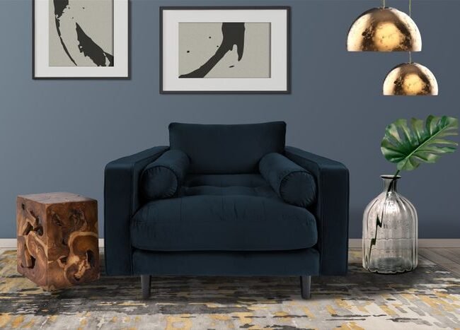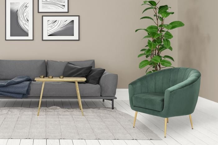 **Retro armchair with comfort** This armchair offers comfort across the board. The thick padding of the seat and backrest in combination with the velvety soft fabric cover ensure a high level of comfort. The rounded shape of the seat shell and the armrests further increase this comfort and make sitting for longer periods more comfortable. Visually, the armchair is impressive thanks to the plain-colored design and the attractive decorative stitching on the backrest. The decorative seams skillfully spice up the otherwise simple design of the chair and also give the chair its retro look. The overall look of the chair is rounded off by elegant metal legs. Whether in the living room or in the bedroom, whether as a reading chair or as an addition to your couch landscape – this armchair transfers the cozy feeling directly to the surroundings and thus creates an ambience that makes you feel good. The actual color of the armchair may vary from the images. Likewise, different color nuances can occur if the material is brushed in different directions and depending on the incidence of light.