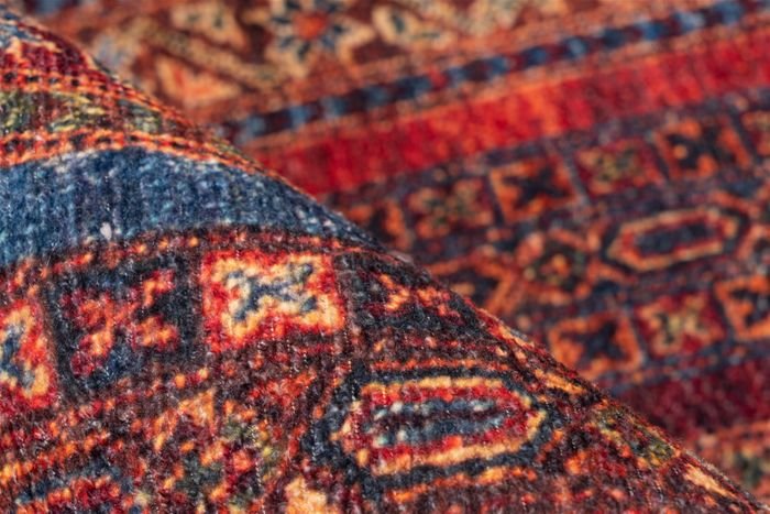 **Printed flat pile carpet** The stylish print design of this flat pile carpet scores points across the board with its vintage character in oriental style. The design impresses with attractive characteristic washes, a summery color scheme and oriental elements. Give your home a Far Eastern look by combining the stylish carpet with colorful cushions, elegant home accessories and glamorous decorative items. Materials in gold, bronze and silver or elegant variations in velvet, silk or leather are particularly suitable. Create a magnificent overall ambience with stylish highlights so that you and your visitors can feel completely at home. Thanks to its very flat pile, the carpet is particularly light and can be easily moved. The material makes the surface easy to care for. The pile is reinforced by a robust cotton backing. The carpet can be placed in rooms with underfloor heating as well as in rooms with conventional radiators. The summery design of the carpet is by no means only suitable for summer, but is an all-rounder for all seasons, because especially in the cold seasons, warm colors are ideal for creating an atmospheric ambience in the room.