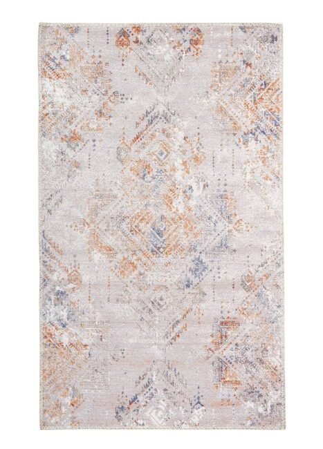 **Printed flat pile carpet** The stylish print design of this flat pile carpet scores points across the board with its vintage character in oriental style. The design impresses with attractive characteristic washes, a summery color scheme and oriental elements. Give your home a Far Eastern look by combining the stylish carpet with colorful cushions, elegant home accessories and glamorous decorative items. Materials in gold, bronze and silver or elegant variations in velvet, silk or leather are particularly suitable. Create a magnificent overall ambience with stylish highlights so that you and your visitors can feel completely at home. Thanks to its very flat pile, the carpet is particularly light and can be easily moved. The material makes the surface easy to care for. The pile is reinforced by a robust cotton backing. The carpet can be placed in rooms with underfloor heating as well as in rooms with conventional radiators. The summery design of the carpet is by no means only suitable for summer, but is an all-rounder for all seasons, because especially in the cold seasons, warm colors are ideal for creating an atmospheric ambience in the room.