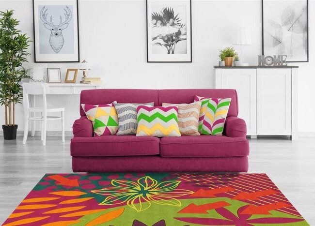 The easy-care material of the flat pile lasts for a long time even with frequent use. The carpet can also be placed in rooms with underfloor heating. A felt fabric backing reinforces the pile and at the same time protects the floor. Choose your new favorite carpet from different designs and sizes and soon enjoy the look in your entrance area, living room or dining room.