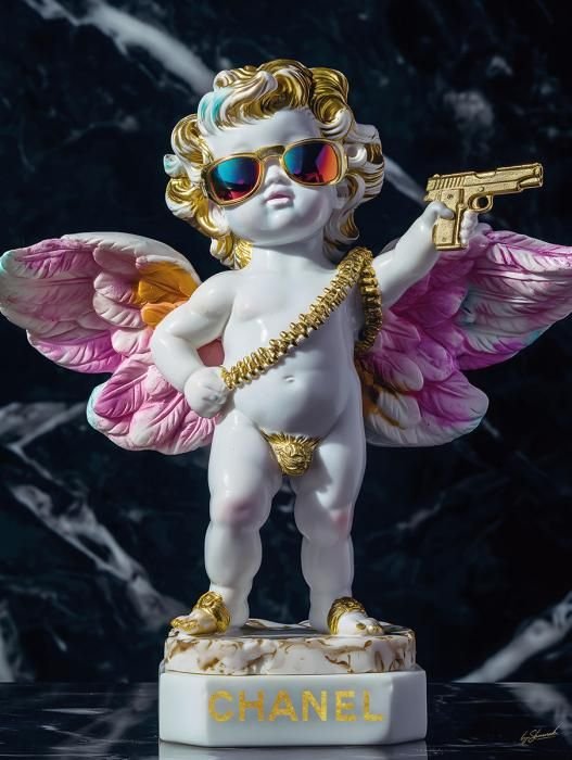 Glasschilderij 60x80cm Engel met wapens