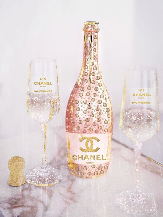 Glasschilderij met goudfolie 60x80cm Rolschaatsen