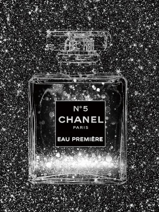 Glasschilderij met goudfolie 60x80cm Flesje met zilveren confetti