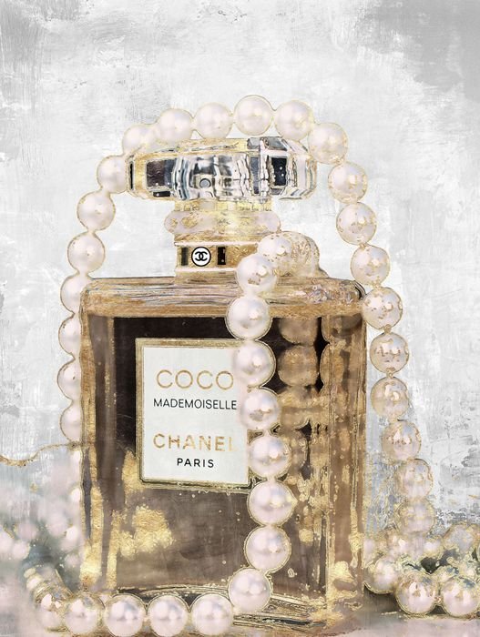 Login to see pricesGlasschilderij met goudfolie 60x80cm Doorzichtig parfumflesje met bloemen
