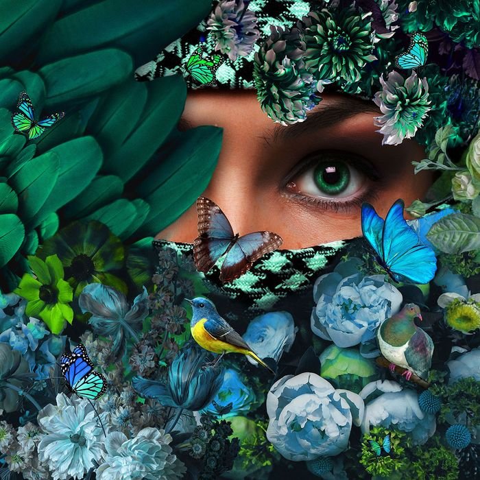 Glasschilderij 80x80cm Beschutte vrouw achter bloemen
