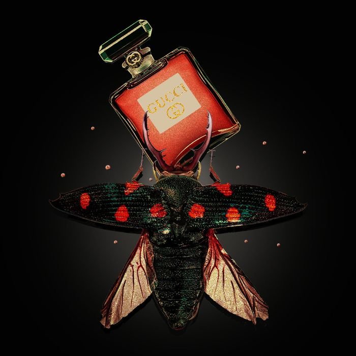 Login to see pricesGlasschilderij met goudfolie 60x80cm Flesje met gouden vlinders