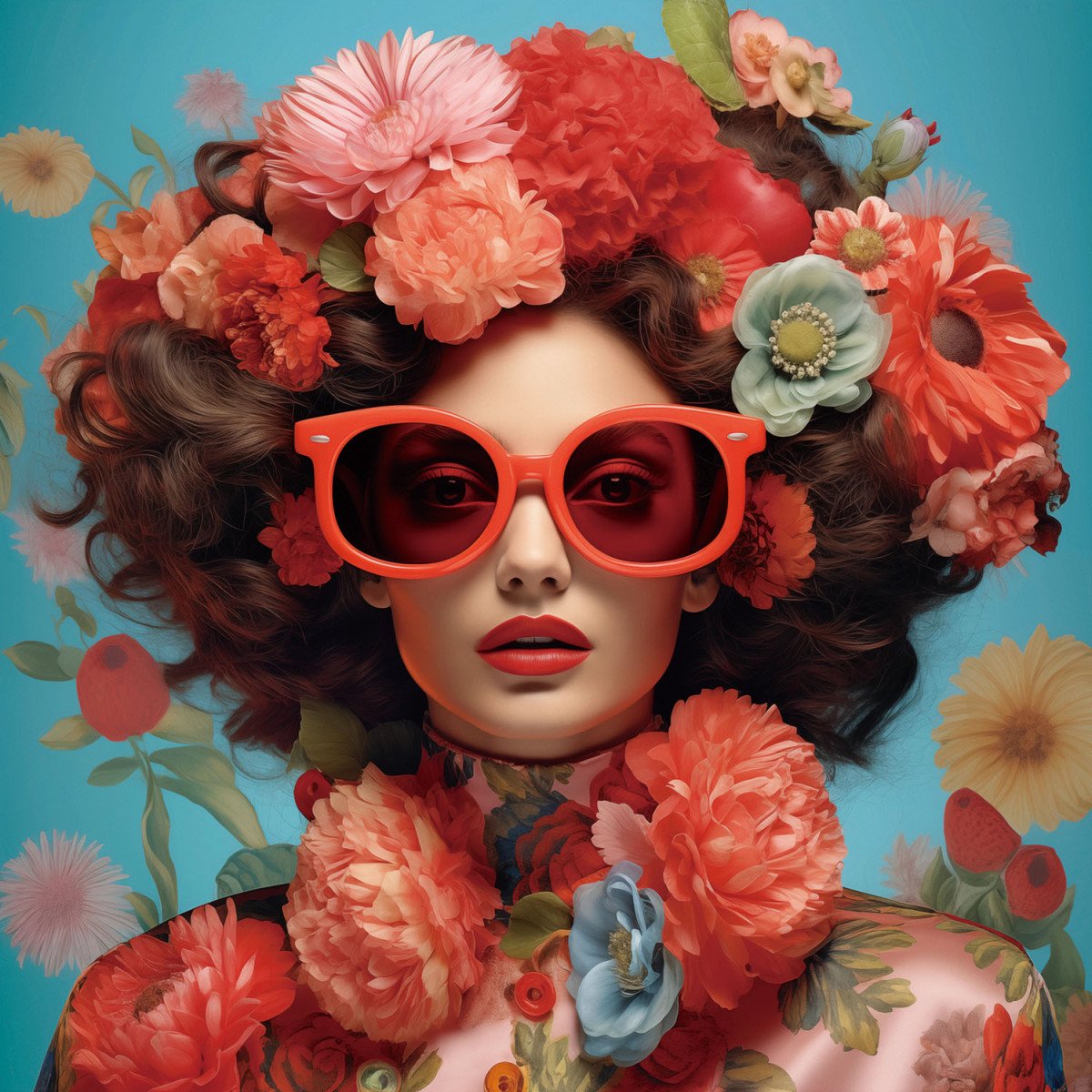 Glasschilderij 80x80cm Kolibries in bloemenzee