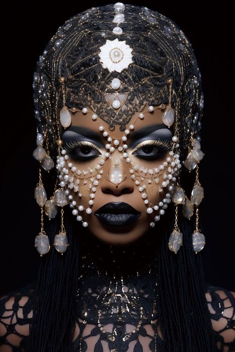 Glasschilderij 80x120cm Vrouw met blauwe/witte sieraden