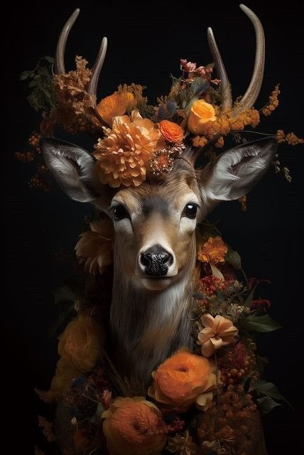 Glasschilderij 80x120cm Hert met bloemen