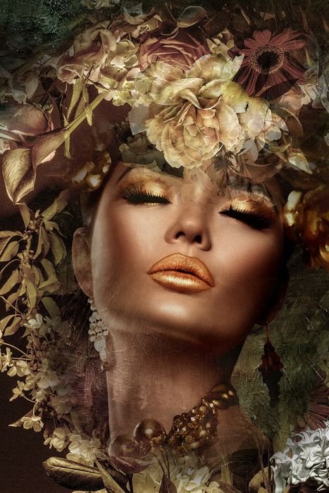 Login to see pricesGlasschilderij 120x80cm Lady met bloemen