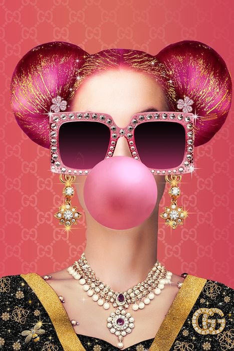 Glasschilderij 80x120cm Bubblegum