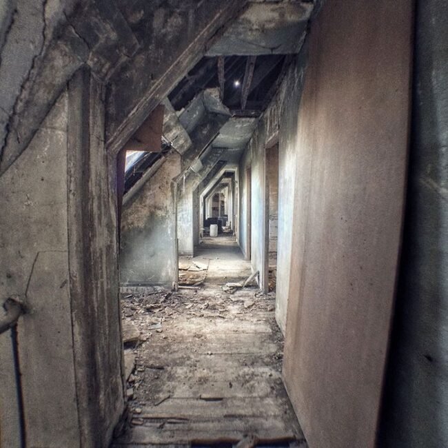 Glasschilderij 100x100cm Verlaten zolder