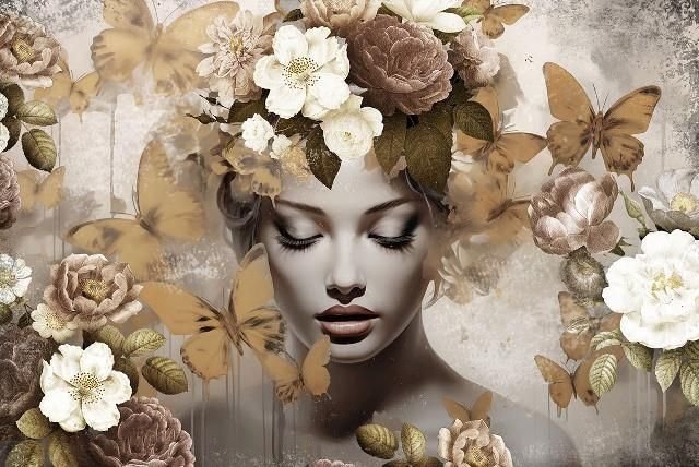 Login to see pricesGlasschilderij 120x80cm Goud geschminkte vrouw met bloem