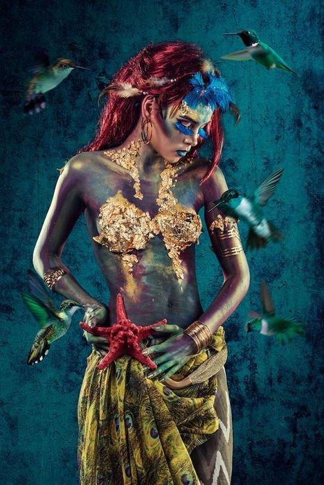 Glasschilderij 80x120cm Geschminkte vrouw met zeester