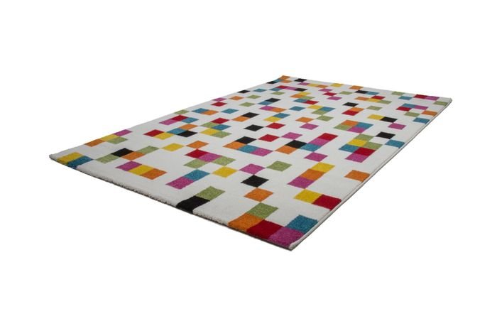 **Short pile carpet – in a vibrant color** Bright colors and creative patterns create a lively atmosphere in your home. Show your individual style with this carpet. The bright carpet with colorful, wildly arranged squares is an absolute eye-catcher and will instantly become the center of any interior design style. You don't have to compromise on durability either, because this carpet is very easy to care for and hard-wearing thanks to the heatset frisée process. The beautiful floor decoration is very trendy and gives every room a classy touch – strikingly beautiful and stylish at the same time. The sophisticated design skilfully loosens up any ambience and sets an attractive accent. The short pile carpet offers numerous combination options with furniture and home accessories and is perfect for a warm, exciting atmosphere.