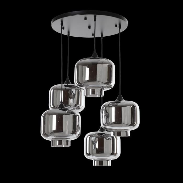 Elevate your space with the Vilmar hanging lamp in a sleek matt black finish, a fusion of modern sophistication and versatility. Featuring a sleek metal plate attached to the ceiling, this lamp dispenses cotton-finished cords. At its heart lies the innovative glass hanger system, allowing you to adorn the lamp with your choice of colored glass. Available in amber, fume, and silver, these glasses come in an array of styles, providing endless possibilities for customization to suit your taste and decor preferences. Choose from our signature Vilmar glasses for a classic touch or opt for the luxurious Emporio glasses to add an extra layer of opulence to your decor. Whether you prefer a playful arrangement with different shaped bulbs hung at different heights, or a uniform display, the Vilmar complements contemporary and industrial-inspired interiors effortlessly, adding an understated elegance to any room.