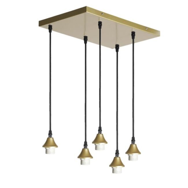 Bell shape. The highlight is the structured surface in shiny gold or nickel. Through this