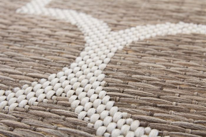 The flat-pile rug in a braided look with a trendy design is an absolute trendsetter and adds Mediterranean accents to every living area. The design underlines any modern flair. The natural character has its own charm. The pastel blue colors of the flat pile rug blend visually seamlessly with its surroundings. The natural look gives new strength. With the special, flat-woven pile, this flat-pile rug with a sisal look is an all-rounder suitable for everyday use, which gives a wide range of home furnishings a matching touch and can also be laid out inside and out. The indoor/outdoor carpet can easily withstand high loads. The subtly graduated colors adapt to any environment. The carpet can be used as an eye-catcher in the living room or as a rug in the hallway as well as an eye-catcher on the terrace or balcony. The robust pile is in direct proportion to its geometric pattern and clearly underlines the strong character of this flat pile rug. The carpet is bordered all around by edging to prevent any fraying. Moisture has no chance. The advantages are obvious: inexpensive, ultra-modern, durable and easy to care for!