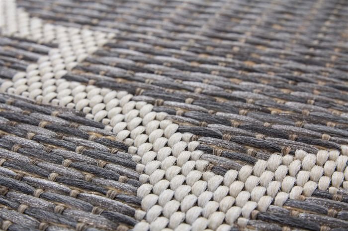The flat-pile rug in a braided look with a trendy design is an absolute trendsetter and adds Mediterranean accents to every living area. The design underlines any modern flair. The natural character has its own charm. The pastel blue colors of the flat pile rug blend visually seamlessly with its surroundings. The natural look gives new strength. With the special, flat-woven pile, this flat-pile rug with a sisal look is an all-rounder suitable for everyday use, which gives a wide range of home furnishings a matching touch and can also be laid out inside and out. The indoor/outdoor carpet can easily withstand high loads. The subtly graduated colors adapt to any environment. The carpet can be used as an eye-catcher in the living room or as a rug in the hallway as well as an eye-catcher on the terrace or balcony. The robust pile is in direct proportion to its geometric pattern and clearly underlines the strong character of this flat pile rug. The carpet is bordered all around by edging to prevent any fraying. Moisture has no chance. The advantages are obvious: inexpensive, ultra-modern, durable and easy to care for!