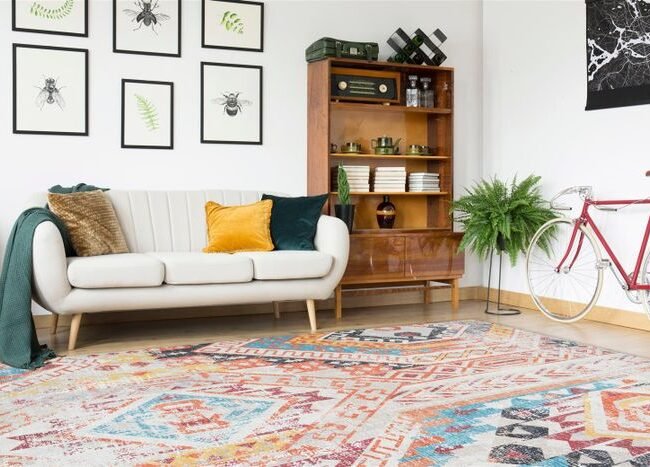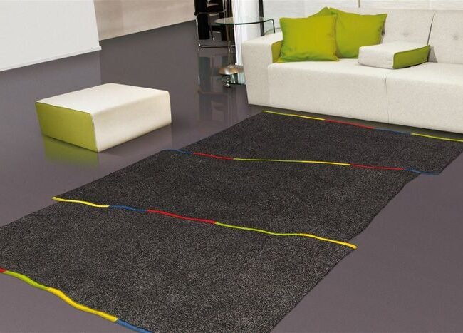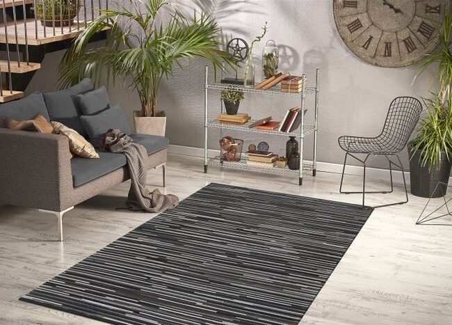 **Carpet with a tasteful 3D structure** This high-quality flat-woven carpet is particularly eye-catching thanks to its simple relief design in two different colors. The used look does the rest and gives the 8mm short pile its special appearance. The quality of the machine-woven unique piece is also particularly high – a carpet with which you can't go wrong! Specifications: • Available colors: gray / blue / orange / yellow • Pile height: approx. 8mm • Material: 100% polyester • Size: 80cm x 150cm / 120cm x 170cm / 160cm x 230cm