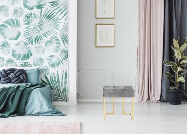 The beautiful round stool comes in a set of 2 and has a high-quality, velvety fabric cover