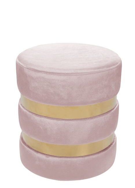 quilted and invites you to linger comfortably. The golden, square metal frame gives the stool a modern look