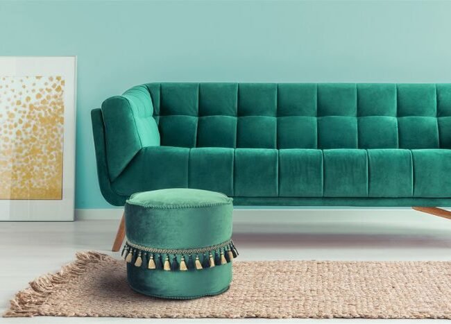This beautiful square stool has a velvety polyester fabric cover. The soft upholstery has decorative buttons