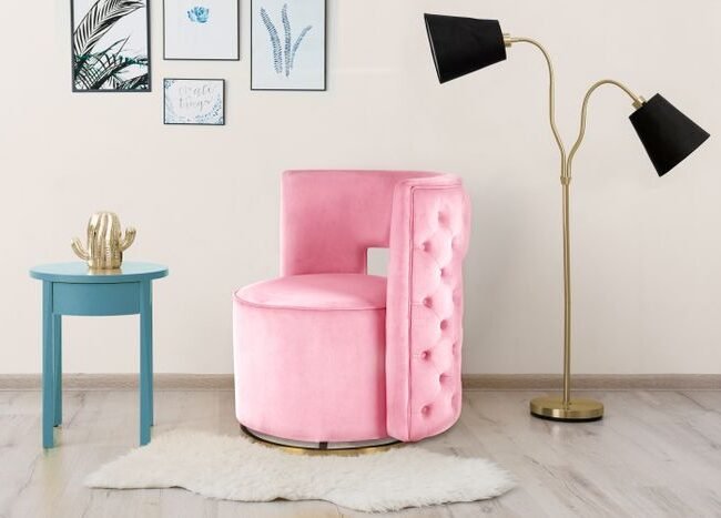 *Glamorous dream seat** With this model you get an absolute dream seat. The stylish highlight quickly becomes an eye-catcher in the living room and bedroom. The chair is also sure to be a dream in the children's room. The round seat has a thick backrest on the outside, which promises high seating comfort thanks to its rounded shape. The curvature means that the backrest can also be used as an armrest. The comfort of the chair is enhanced by the thick padding on the seat and backrest. This means that even longer periods of sitting remain comfortable. The upholstered chair also looks great. The plain-colored, velvety fabric cover ensures an elegant appearance, which is emphasized by the rounded shape. The piece of furniture gets its particularly glamorous character from attractive decorative stitching and decorative buttons on the back of the backrest. Placed in the room, the chair can unfold its full effect and create a luxurious ambience. You can enhance the ambience by combining it with materials such as leather, silk or velvety velvet. Treat yourself to a piece of luxury and make the eyes of more than just little princesses shine with this seating. The actual color of the piece of furniture may differ from the pictures. Different light incidence and different directions of the fabric cover can result in different color nuances.