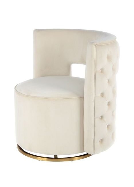 *Glamorous dream seat** With this model you get an absolute dream seat. The stylish highlight quickly becomes an eye-catcher in the living room and bedroom. The chair is also sure to be a dream in the children's room. The round seat has a thick backrest on the outside, which promises high seating comfort thanks to its rounded shape. The curvature means that the backrest can also be used as an armrest. The comfort of the chair is enhanced by the thick padding on the seat and backrest. This means that even longer periods of sitting remain comfortable. The upholstered chair also looks great. The plain-colored, velvety fabric cover ensures an elegant appearance, which is emphasized by the rounded shape. The piece of furniture gets its particularly glamorous character from attractive decorative stitching and decorative buttons on the back of the backrest. Placed in the room, the chair can unfold its full effect and create a luxurious ambience. You can enhance the ambience by combining it with materials such as leather, silk or velvety velvet. Treat yourself to a piece of luxury and make the eyes of more than just little princesses shine with this seating. The actual color of the piece of furniture may differ from the pictures. Different light incidence and different directions of the fabric cover can result in different color nuances.