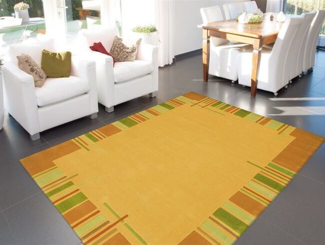 The beautiful short-pile carpet immediately creates a cozy feeling in the viewer. The stylish yellow color and the mottled look of the carpet give your rooms a special retro feeling. The modern carpet is a handmade trendy carpet in an extremely stylish design. The skillfully placed fibers make it a carpet that attracts everyone's attention. The elegant structures and the intense color brilliance make the rug a highly attractive carpet that fits perfectly into the modern or classic living environment. An artistic carpet wonder that belongs on the floor, created by the hand of a true luminary in his field. The elegant carpet is characterized by its special charisma. The designer carpet is a short pile carpet and has a cotton back. It is easy to clean and low-lint, making it ideal for allergy sufferers. The dense pile and the processed special fiber protect the colors from fading. The strong design carpet is full of esprit and tempts you to inspire. Comfort is always the priority. It is suitable for any type of floor and is also suitable for floors with underfloor heating.