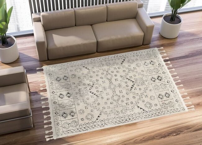 The beautiful short-pile carpet immediately creates a cozy feeling in the viewer. The harmoniously coordinated tones of ivory and taupe and the mottled look of the carpet give your rooms a special retro feeling. The modern carpet is a handmade trendy carpet in an extremely stylish design. The skillfully placed fibers make it a carpet that attracts everyone's attention. The elegant structures and the intense color brilliance make the rug a highly attractive carpet that fits perfectly into the modern or classic living environment. An artistic carpet wonder that belongs on the floor, created by the hand of a true luminary in his field. The elegant carpet is characterized by its special charisma. The designer carpet is a short pile carpet and has a cotton back. It is easy to clean and low-lint, making it ideal for allergy sufferers. The dense pile and the processed special fiber protect the colors from fading. The strong design carpet is full of esprit and tempts you to inspire. Comfort is always the priority. It is suitable for any type of floor and is also suitable for floors with underfloor heating.