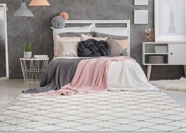 Combine the carpet with matching home textiles and create a cozy and cozy atmosphere in your home with harmonious lighting.